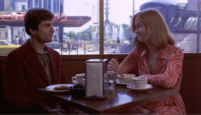Der Film hat eine seltsame Stimmung. Leuchtreklamen verschwimmen mit regennassen Fahrbahnen, die Nacht ist dominanter als der Tag, die Musik ist melancholisch. Travis „schwimmt“ mit seinem Taxi durch dunkle, dampfenden Straßen. Die Stimmung des Films ist bedrückend und gefährlich. Es scheint immer etwas verborgen zu sein in den dunklen Ecken der Stadt. Und auch Travis´ Charakter offenbart sich erst langsam. Er hängt viel seinen Gedanken nach während er durch die Straßen fährt. Und man ahnt, dass es nicht immer gute Gedanken sind. Er ist eine Art einsamer Cowboy, der seine Probleme gerne selbst löst, ohne darüber nachzudenken, was für Auswirkungen das hat.